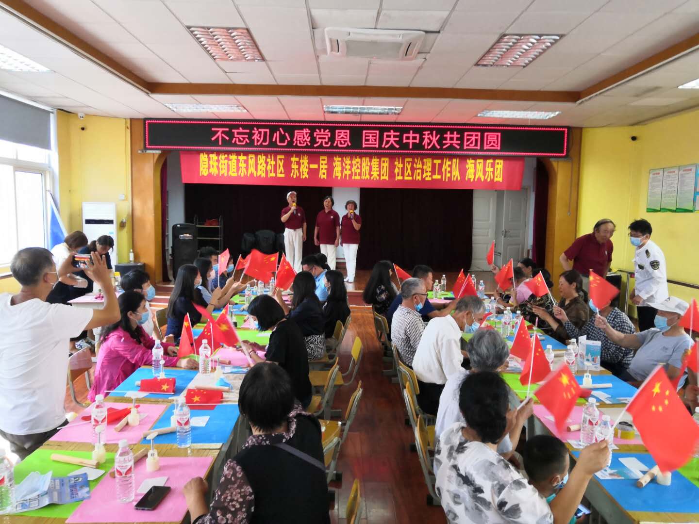 圖1:全體一起揮動國旗唱紅歌