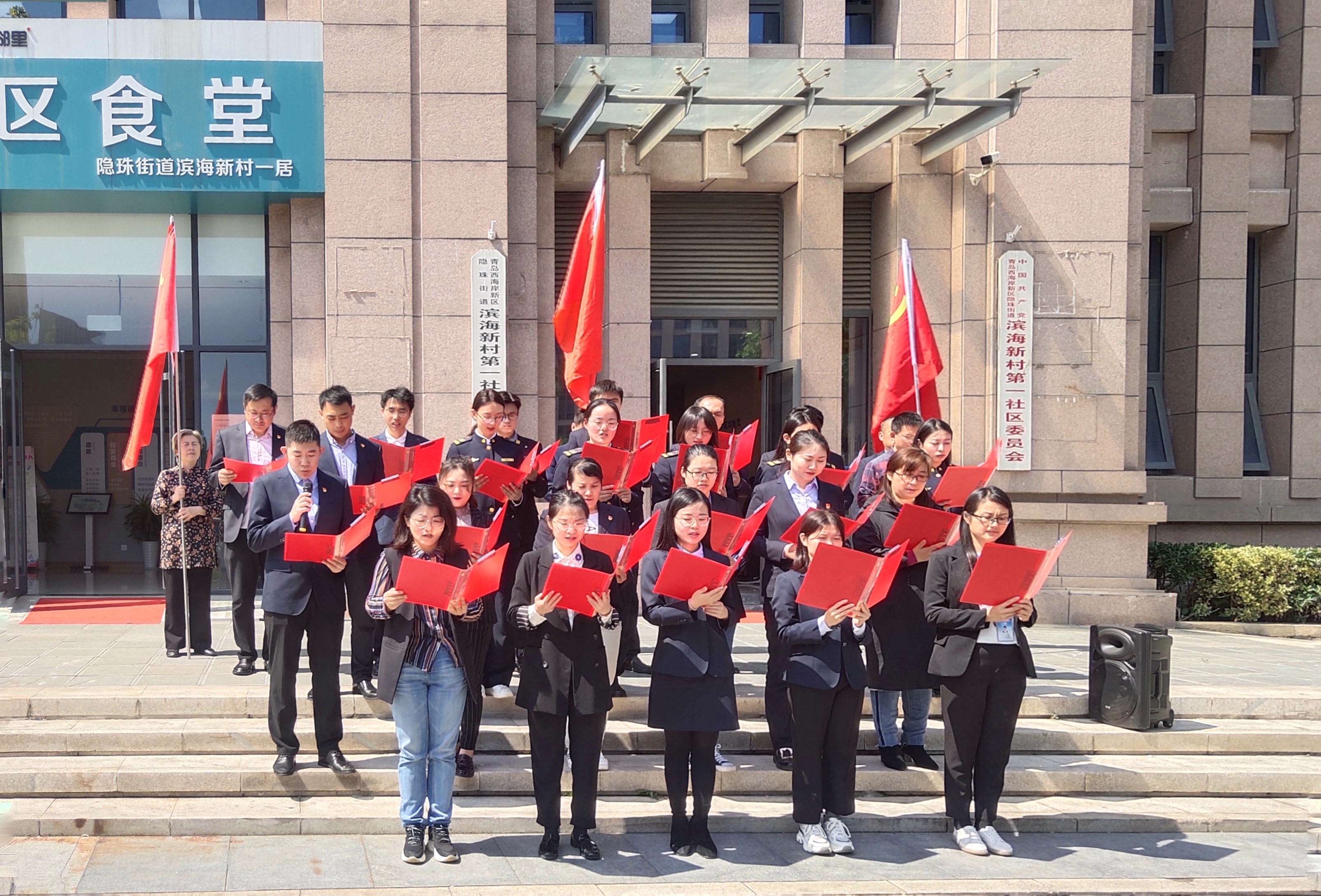 首先,共建雙方成員在濱海一居社區(qū)活動中心樓前集體誦讀了舒婷的《祖國啊,我親愛的祖國》,共同感受詩人對祖國的那份無比熱愛、無限期盼和獻(xiàn)身的決心。