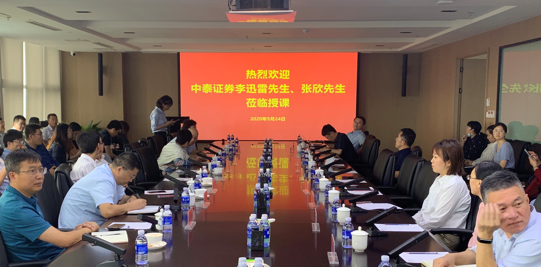 9月24日下午,??丶瘓F(tuán)舉辦首期投融資業(yè)務(wù)策略分析會,此次分析會邀請了中國首席經(jīng)濟(jì)學(xué)家論壇副理事長、中泰證券股份有限公司首席經(jīng)濟(jì)學(xué)家李迅雷先生和中泰證券電子高級分析師張欣先生參加并作了主題演講,區(qū)國資中心、集團(tuán)各部門、子公司和持股公司有關(guān)領(lǐng)導(dǎo)同志參加了分析會。