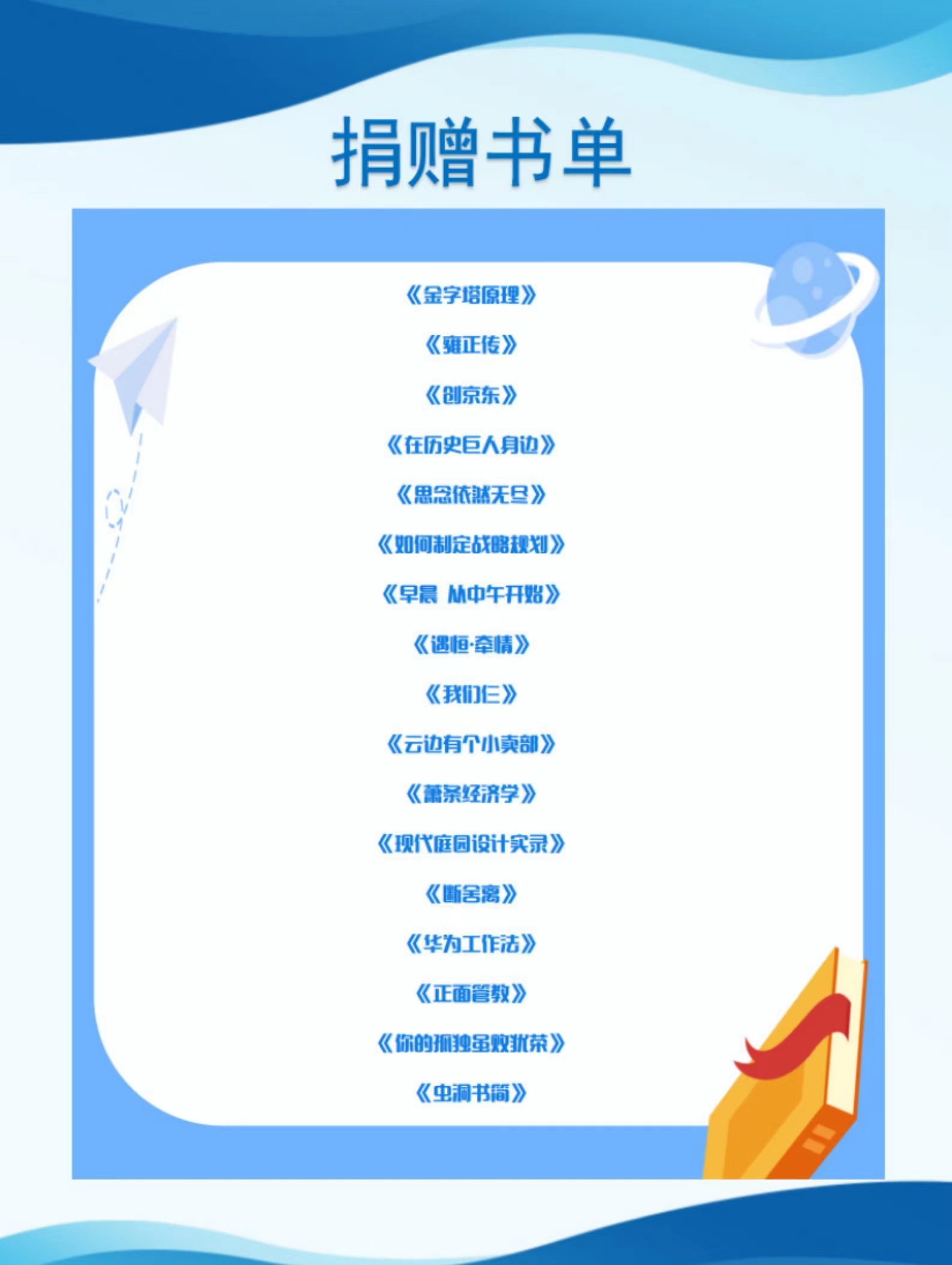 ▲以上為部分捐贈(zèng)書(shū)單展示