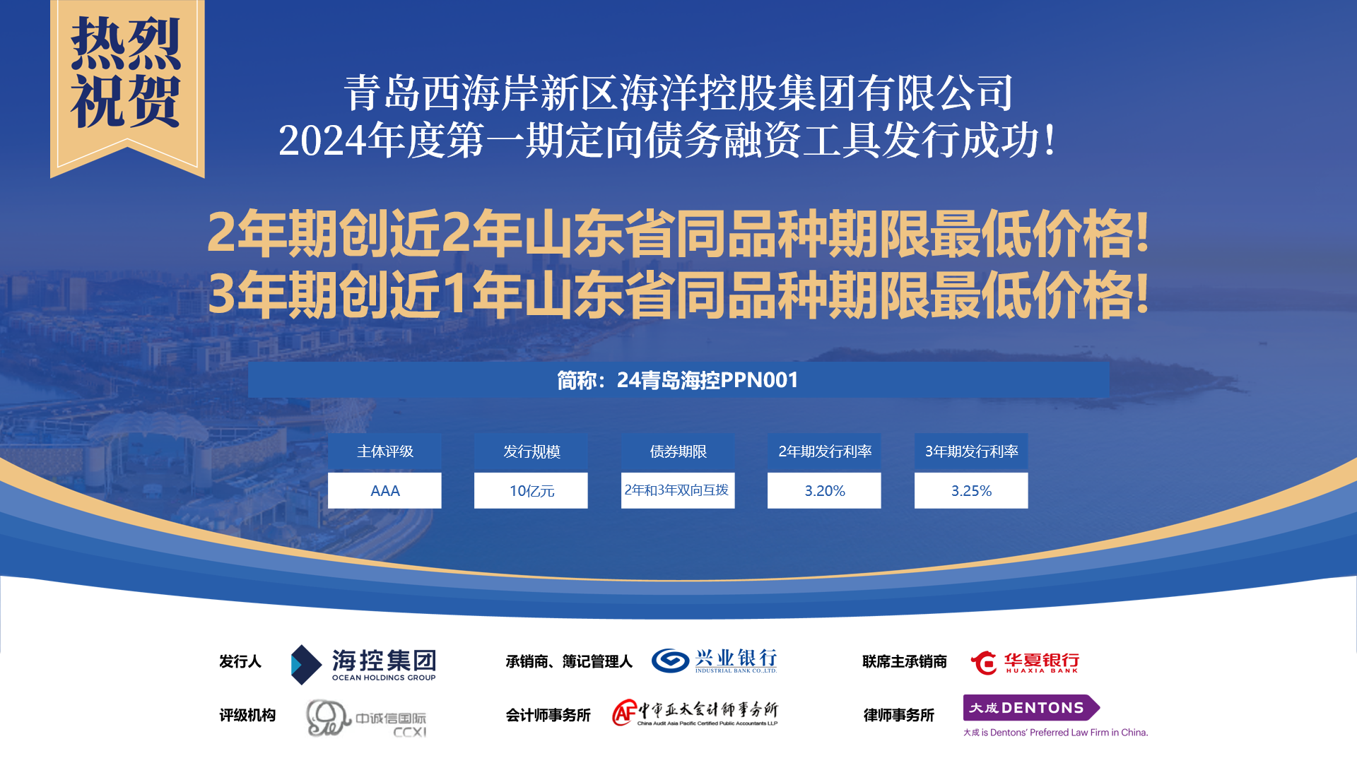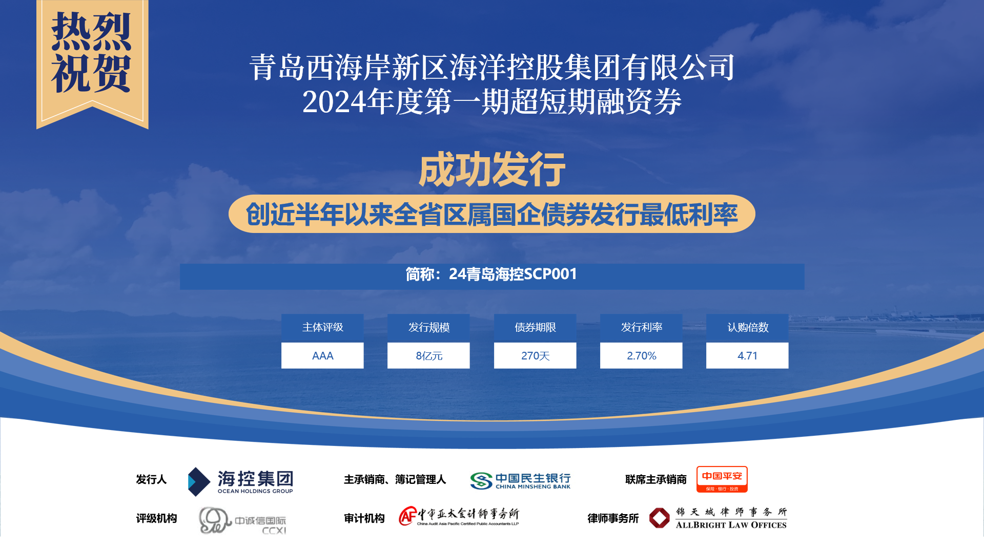 集團2024年債券發(fā)行“開門紅”體現(xiàn)了資本市場對海控集團的高度認可。??丶瘓F將繼續(xù)深化產(chǎn)業(yè)化轉(zhuǎn)型成果,拓展多元融資渠道,為西海岸新區(qū)高質(zhì)量發(fā)展做出更大貢獻。