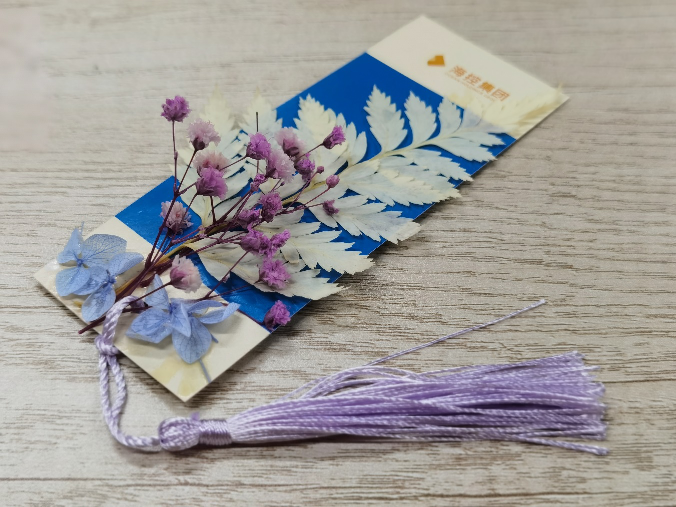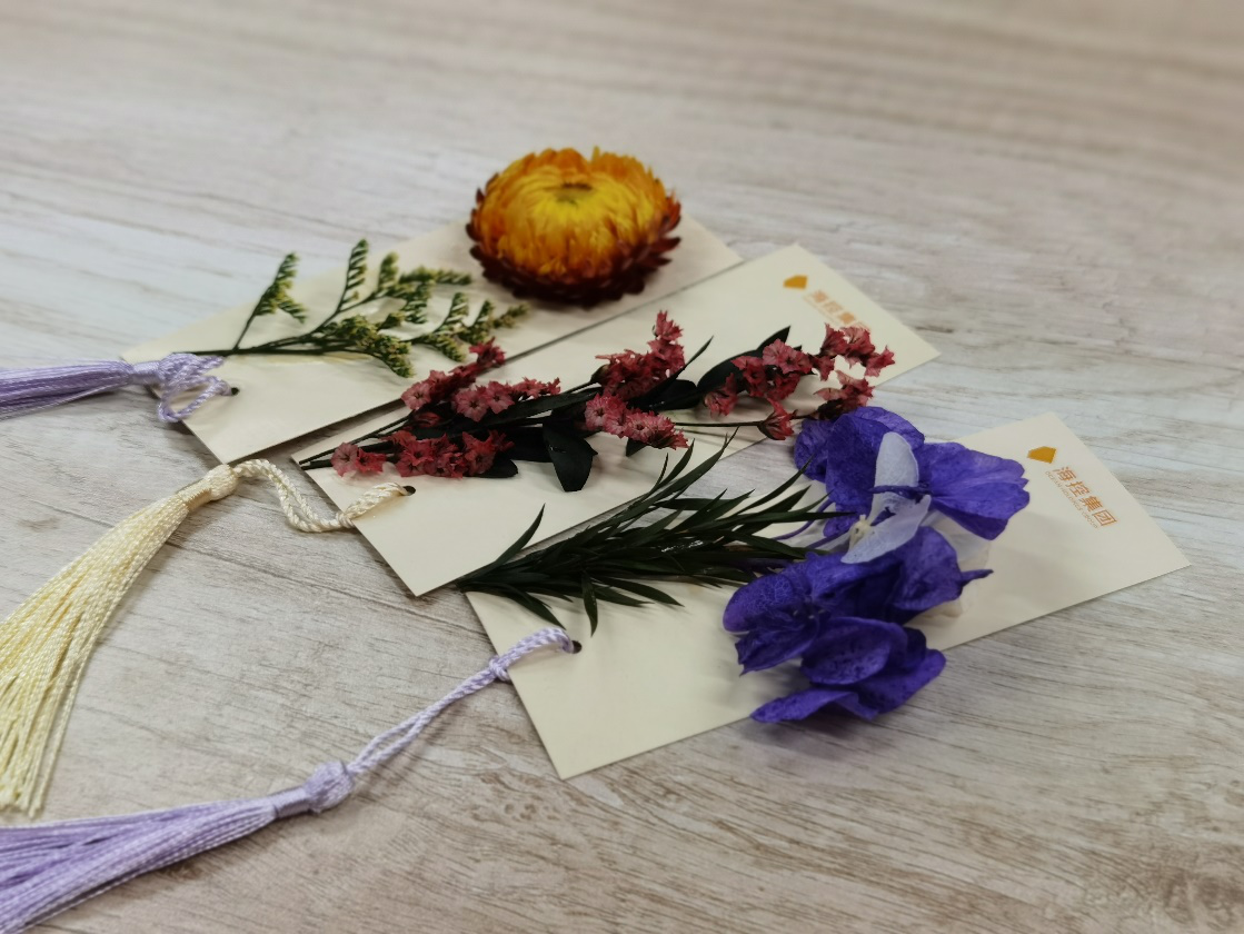 現(xiàn)場擺放有集團定制logo書簽、空白書簽、干花和各色馬克筆。在學習小組和文藝小組的帶領下,大家用手中的畫筆和工具,在書簽上揮灑著創(chuàng)意與靈感。